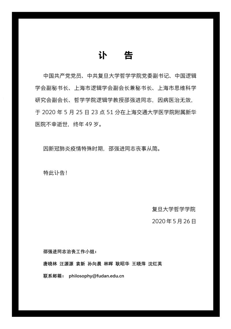 邵强进老师讣告