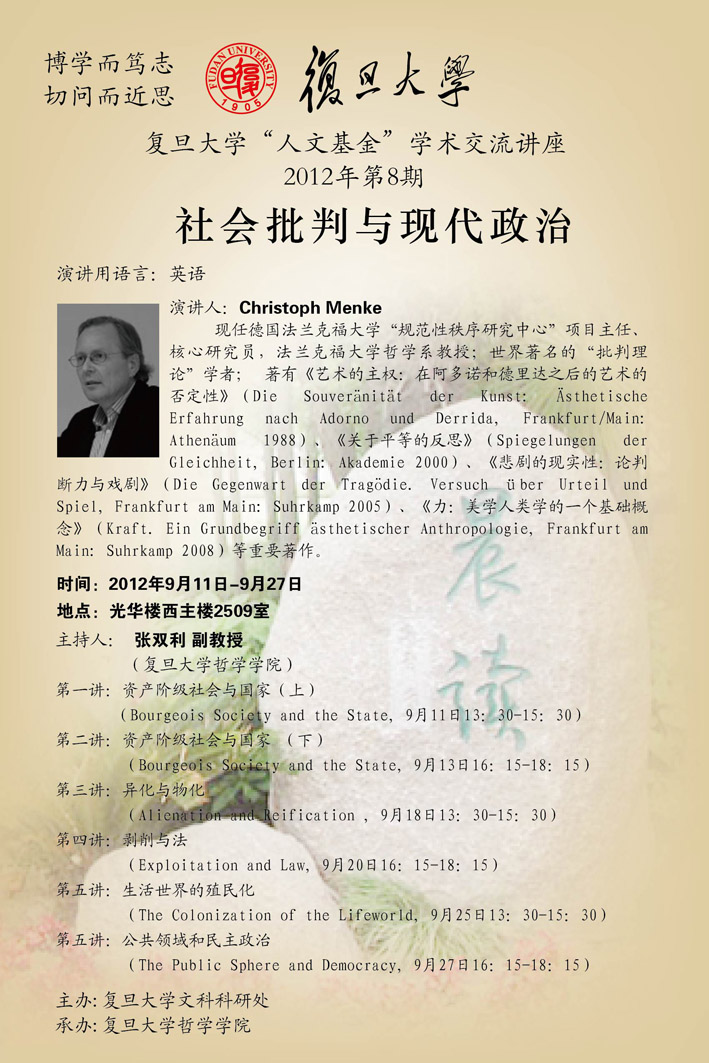 复旦大学“人文基金”学术交流讲座:社会批判与现代政治