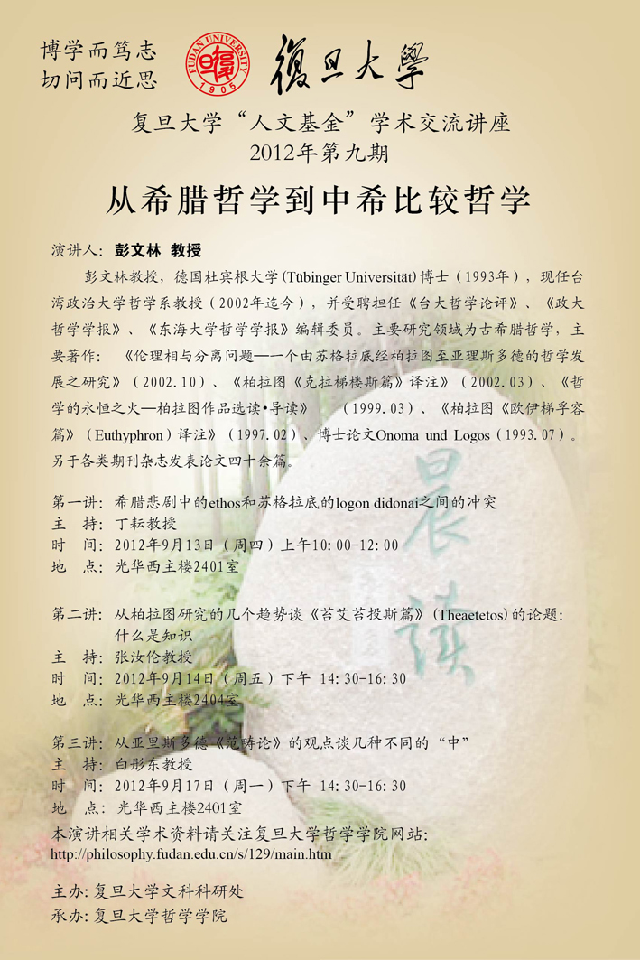 复旦大学“人文基金”学术交流讲座:从希腊哲学到中希比较哲学