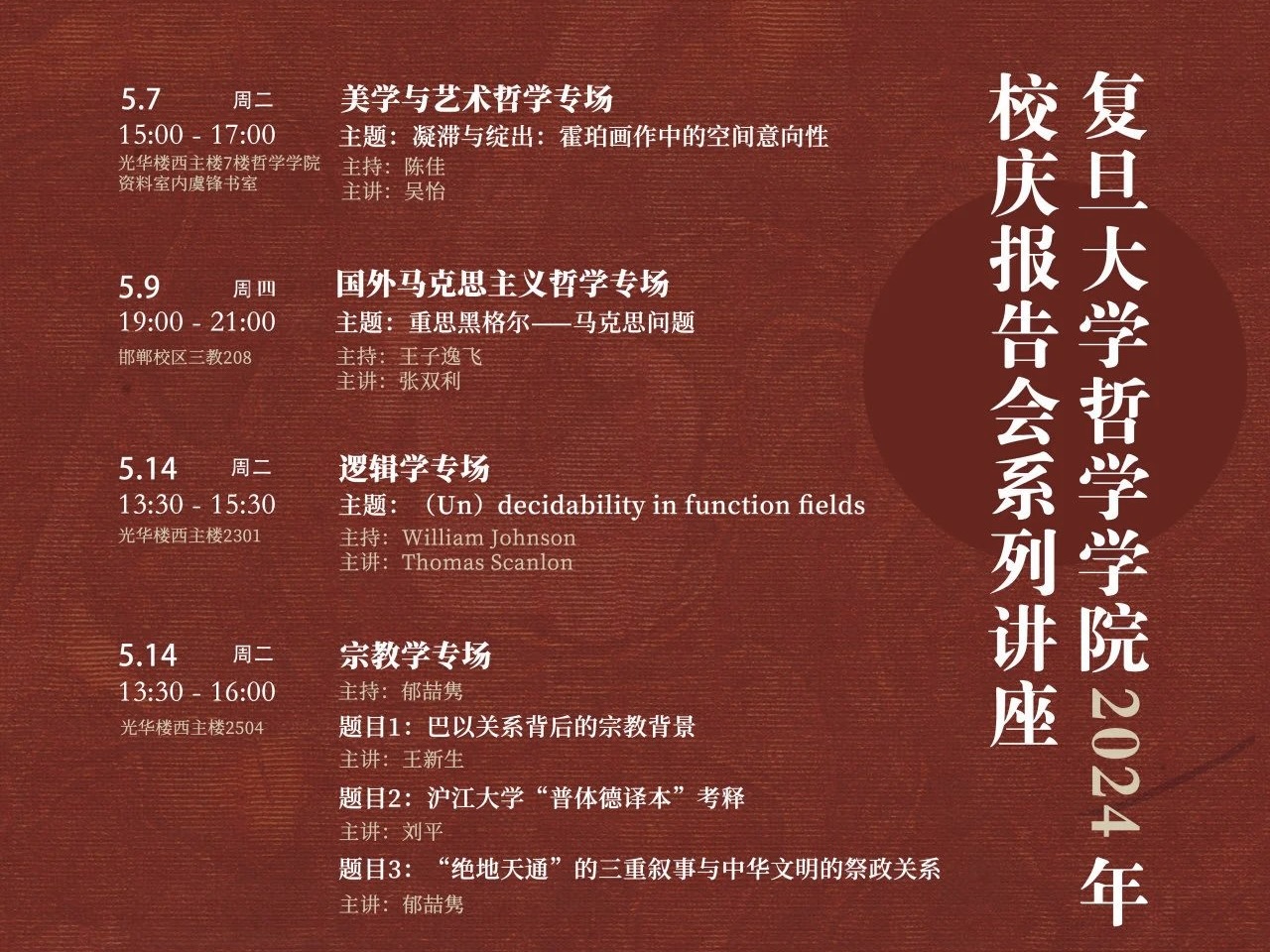 8个学科,13场讲座!复旦大学哲学学院2024年校庆报告会系列讲座...